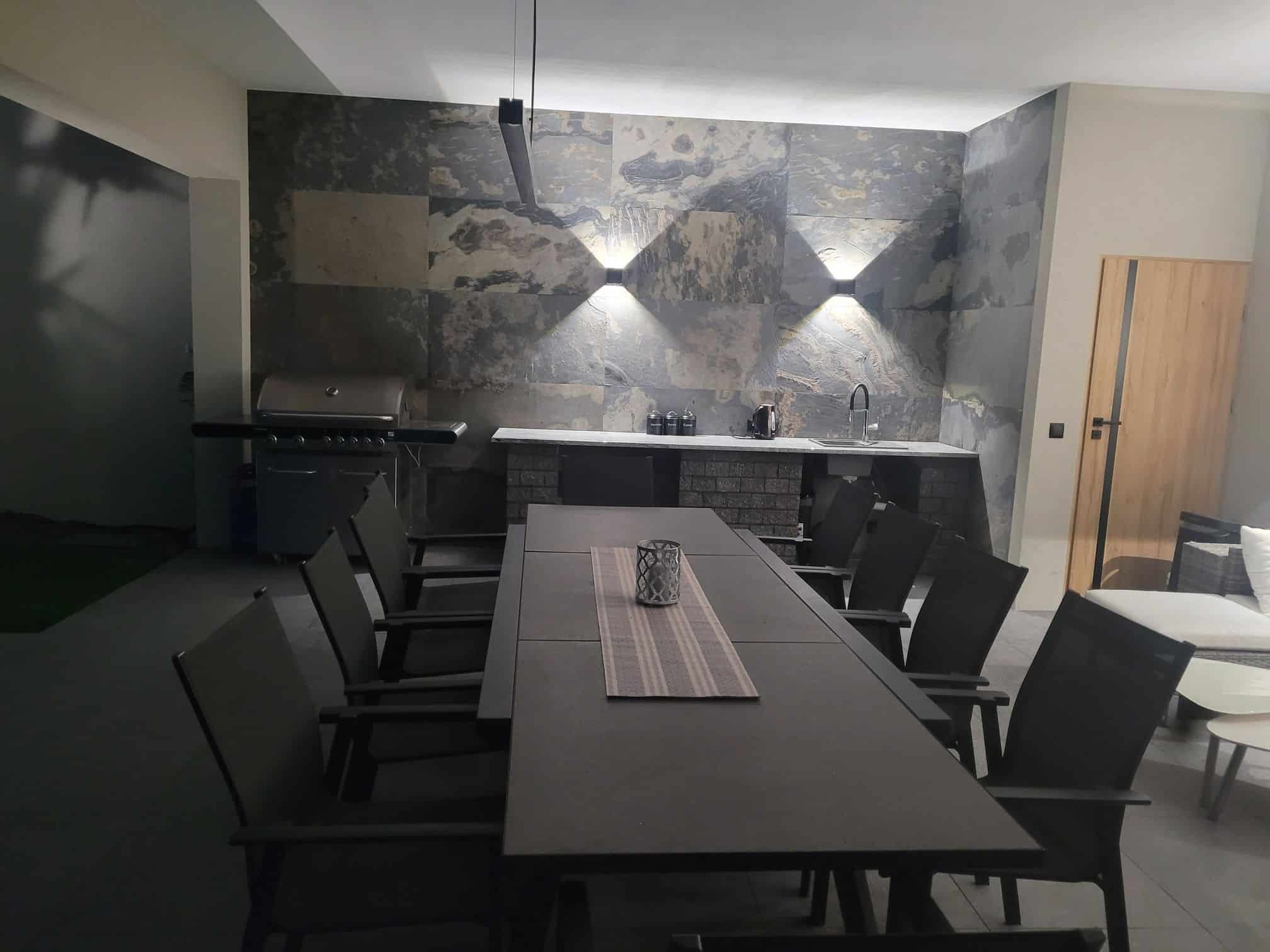 🛑 W przypadku montażu w wilgotnych lub zewnętrznych warunkach zaleca się zastosowanie odpowiedniego kleju i impregnatu do kamienia.